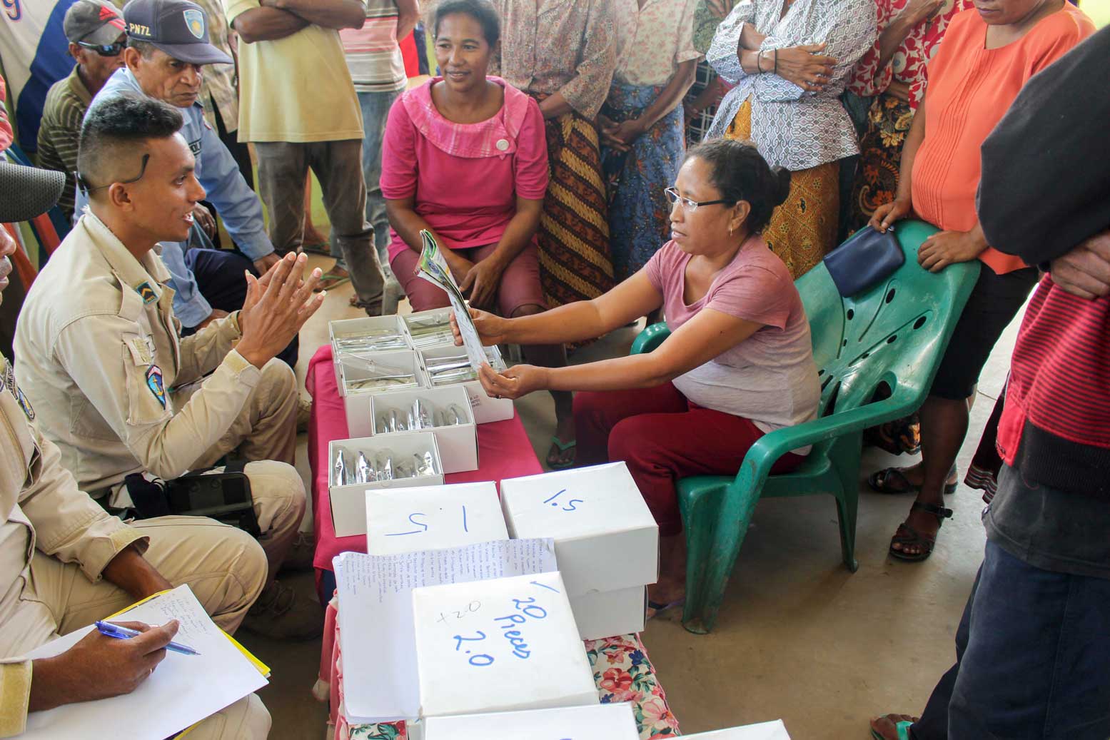 - Here Meggi is showing her how to opperate the portable solar powered emergency lights so kindly donated by our friend Lilik in Jakarta.