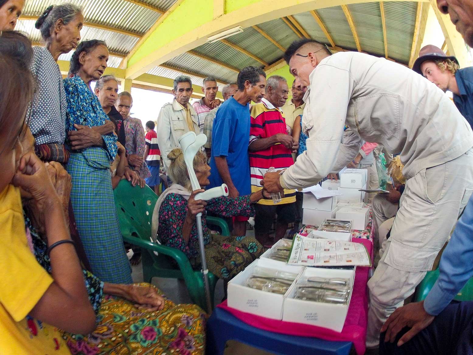 - At 82 years old this man needed help walking. Thanks to the German European School in Singapore we were able to provide this brace.