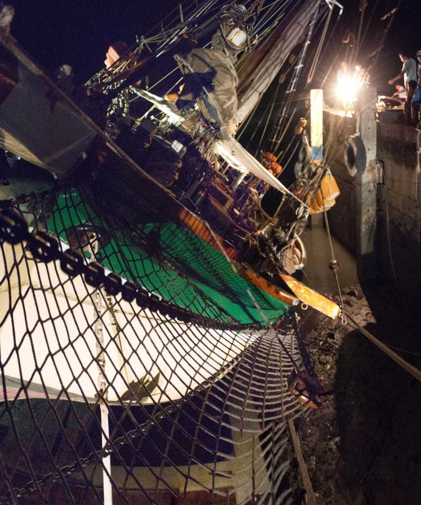 - At about 2100 hours a crane arrives to assist to return Vega to the upright position.