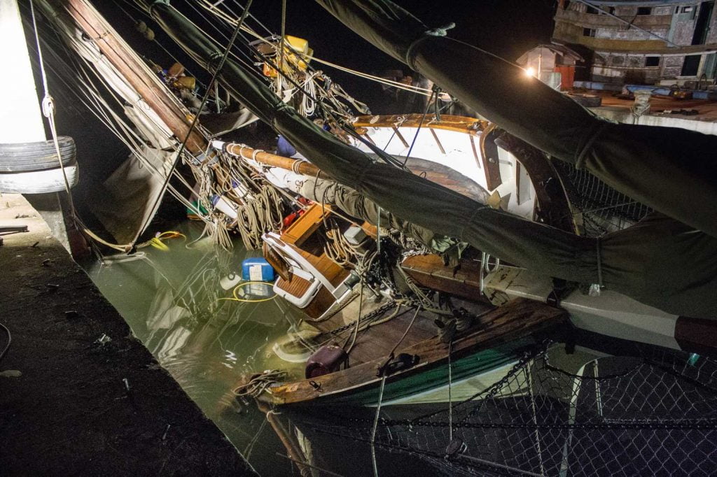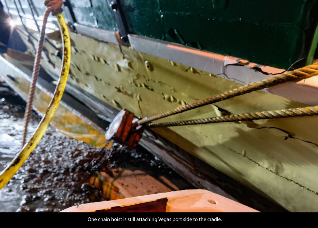 - Next, they decided to remove the cradle from under Vega by lifting her bow with the crane. This caused the boat to slip into the deeper water effectively sinking her.