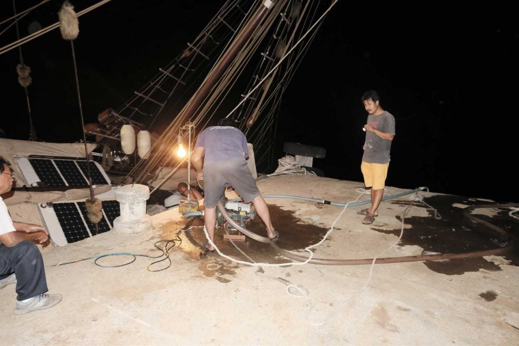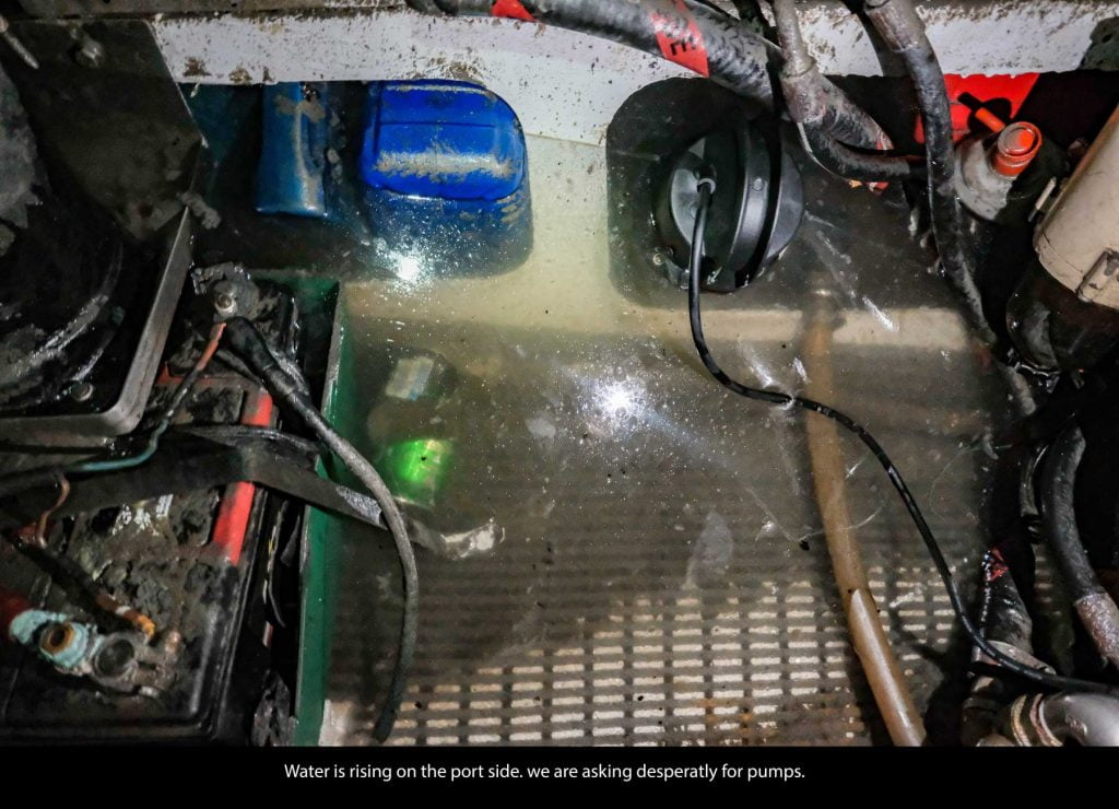 - All three of Vega's bilge pumps were running but could not keep up with the water ingress. We ask the shipyard for additional pumps. After 2 hours the first portable pump arrived. More appeared over the next 3 hours. Out of the 5 pumps they brought us only 3 worked.