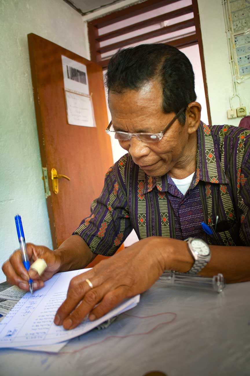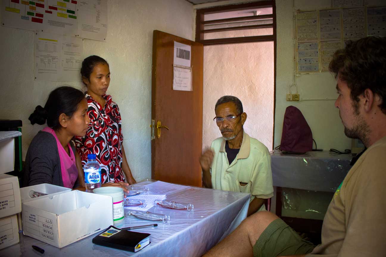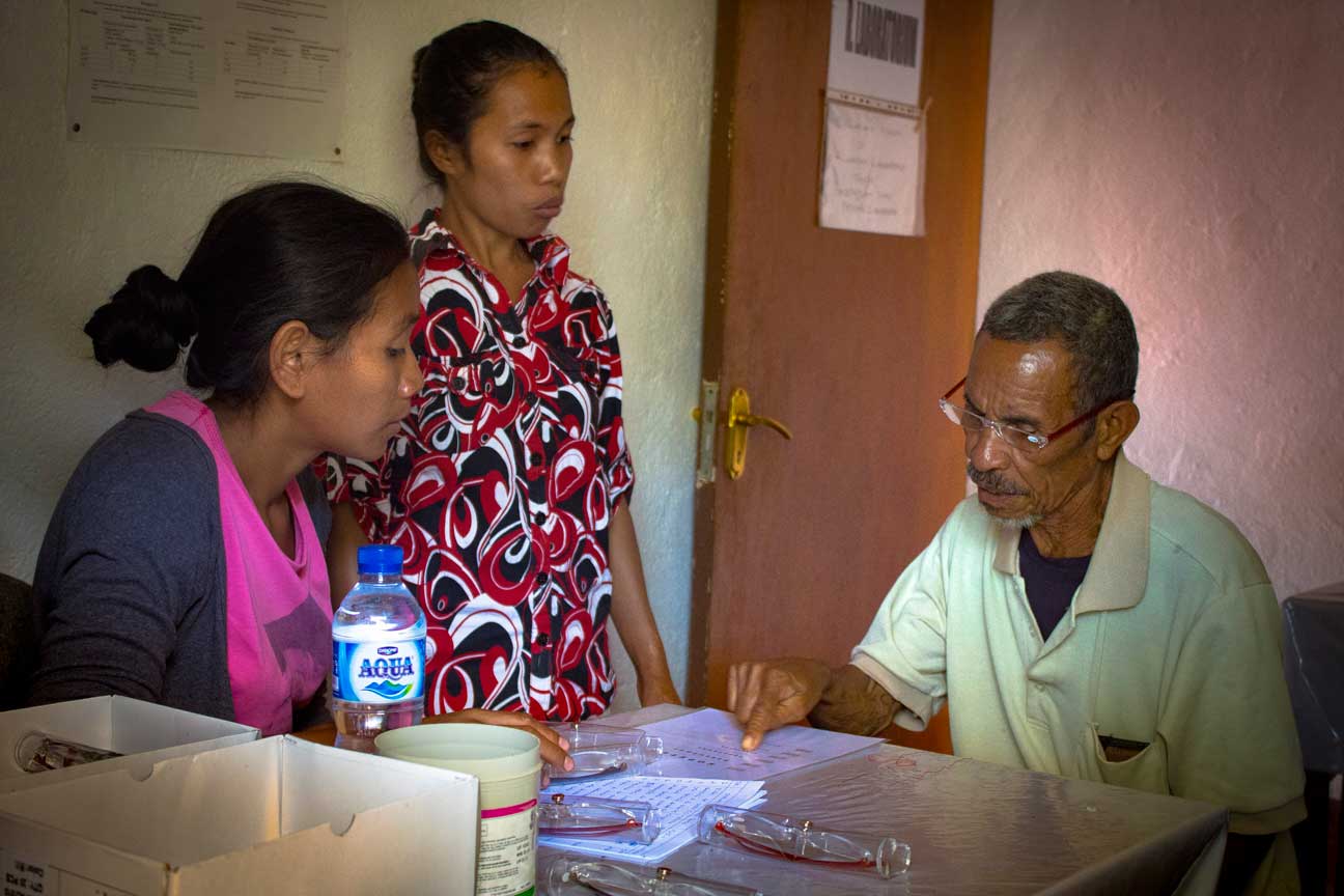 Triloka Clinic is situated in Baucau District. Together with their staff, we managed to distribute way over a hundred pairs of reading glasses. After short training nurses, Akesa and Ima were ready to fit glasses for people from surrounding villages.