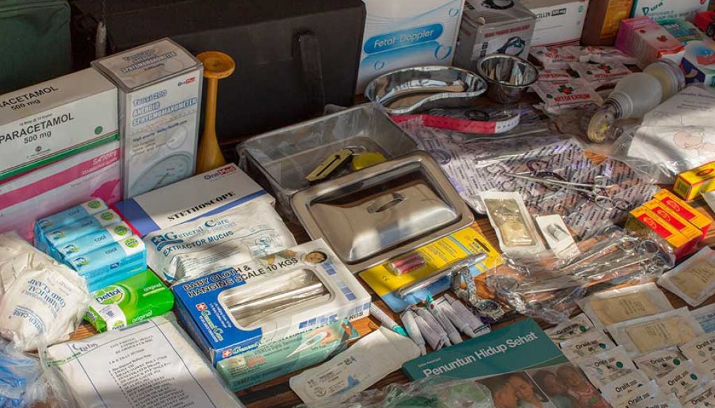 - Triloka Clinic trained Community midwife Teresa receives a new Midwife kit from Vega. She is the first point of contact for people requiring health services in her remote village.