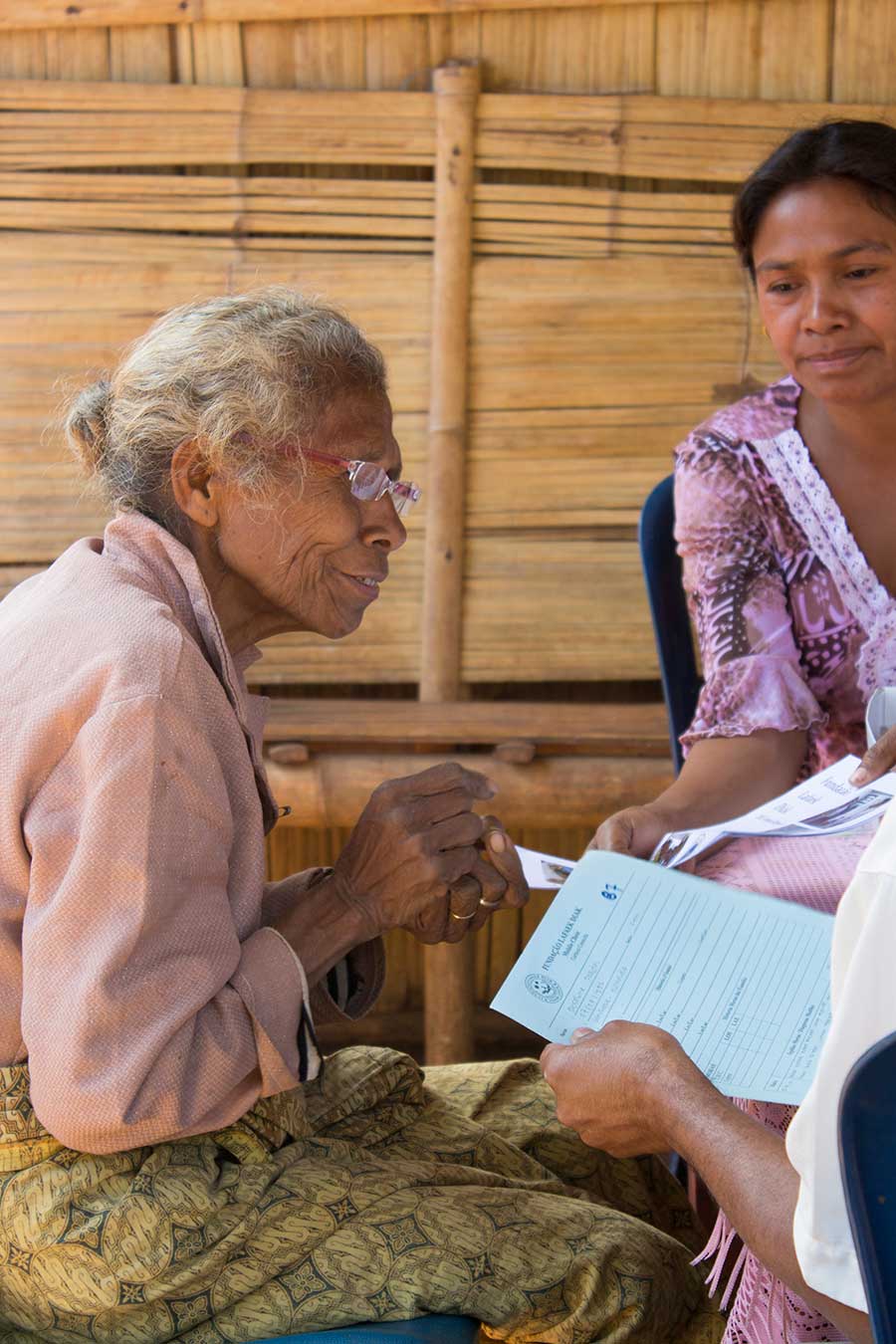 Lafaek Diak and Triloka Clinic trains Community Health Volunteers chosen from remote villages, far from medical services yet still in the mobile clinic target area. One of them is Teresa, 39 years old from Uatulari/ Bahalale The Community Health Volunteers observe and learn on-the-job at the clinic, rotate through patient administration and history anamnesis of patients, assist the doctor during patient consultations by measuring blood pressure and taking temperatures, the midwife during the maternity consultations, in the pharmacy, in the laboratory, with health education and in the nutrition demonstration cooking program.